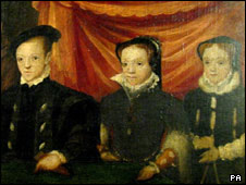 The children of Henry VIII, Edward VI, Mary I and Elizabeth I, in a copy of the 1545-1550 original.  Property of the Duke of Buccleuch, Boughton House.