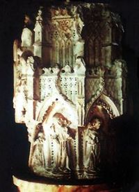 The Boleyn cup 1535-36 in St. John the Baptist Church in Cirencester with motto “The Most Happy.” Elizabeth inherited this beautiful from her mother and in turn gave it to her physician Richard Master who presented it to the church.